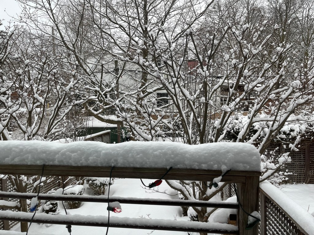 Well we certainly got some snow accumulation overnight. Perfect for shovelling – light and fluffy.